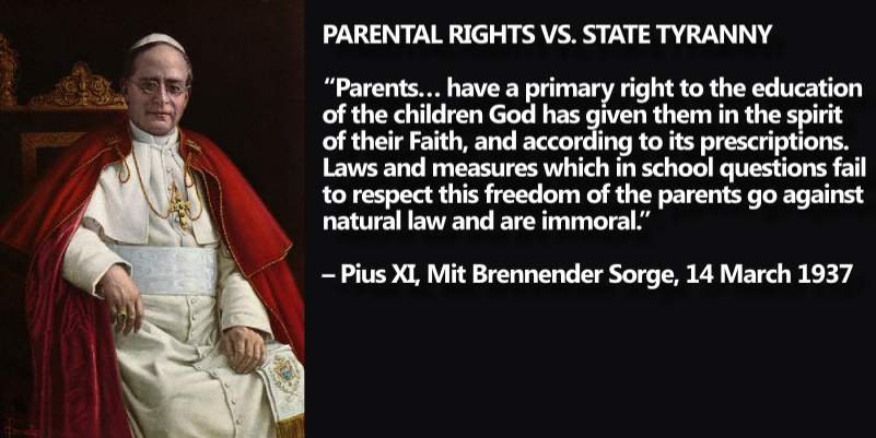 "SINCE EDUCATION CONSISTS ESSENTIALLY in preparing man for what he must be and for what he must do here below, in order to attain the sublime end for which he was created, it is clear that there can be no true education which is not wholly directed to man's last end ... there can be no ideally perfect education which is not Christian education." - CHRISTIAN EDUCATION OF YOUTH, POPE PIUS XI, DECEMBER 31, 1929