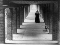 zapatos oscuros debajo de sus faldas. Ahora se adelanta la monja que tiene el