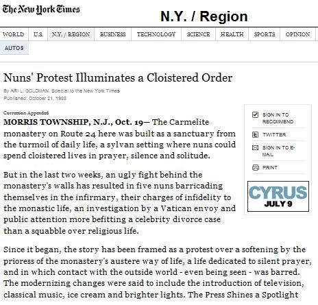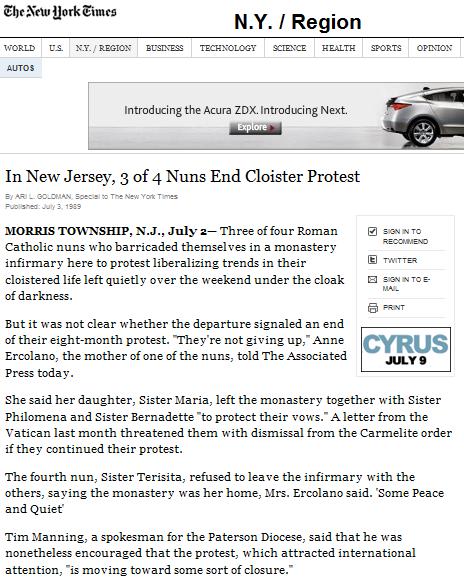 TERESITA ESTA DE ACUERDO CON EM NUEVO CONVENTO CARMELITA DE NEW JERSEY