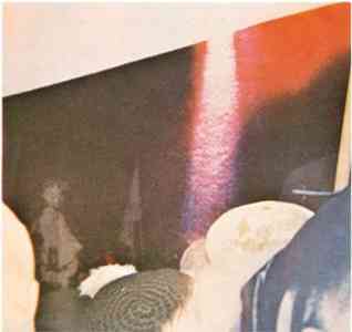 Over praying pilgrims appear remarkable shafts of red and a